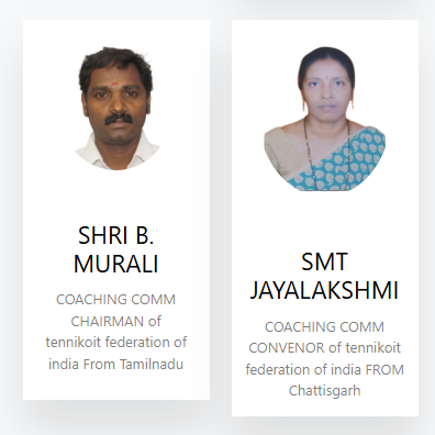 | Tamil Nadu Tenni Koit Association | Mr. V. Varadarajan 32A, North Usman Road, T. Nagar Chennai-600017 Mobile No : 9829046128 | Mr. D. Shanker, No. 34/14, Welcome Colony, Anna Nagar West Extension, Chennai 600101 Cell: 6382600373 E.Mail : shankard2021@gmail.com | Mr. K. Shanmuga Raj 7/1, Munuswamy Street, Subramaniyam Salai, West Saidapet, Chennai- 600015 | NO: 181/1980 |